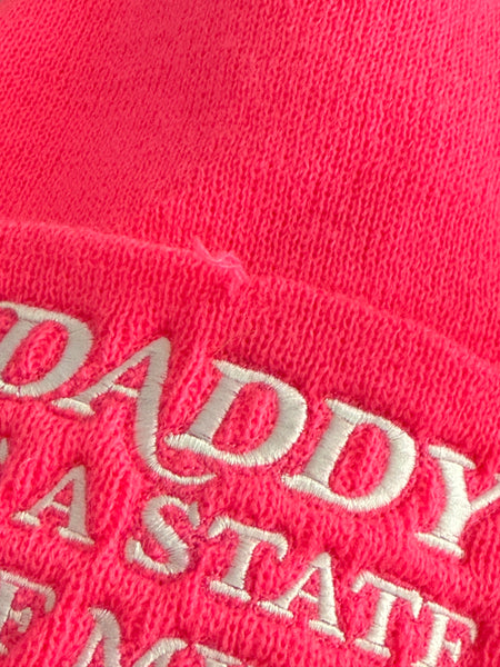 daddy is a state of mind beanie-large pull in front of beanie above embroidery