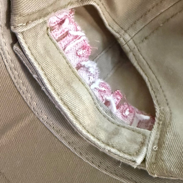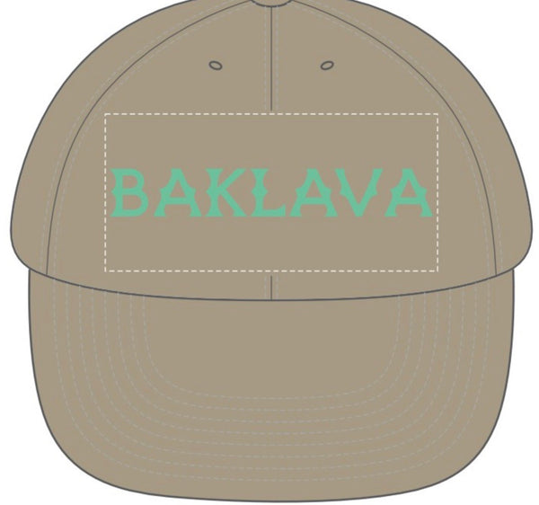 -one size fits many dad hat in pigment dyed tan with mint green embroidery
